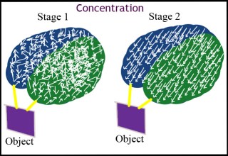 The analogy shown here is similar to that of iron filings orienting themselves to a magnet. The magnetic force here is what we may call will power. Using will power we direct all the neuronal energy towards a specific object. Perfect concentration would be when you become the object itself or feel that ‘you are the object’.