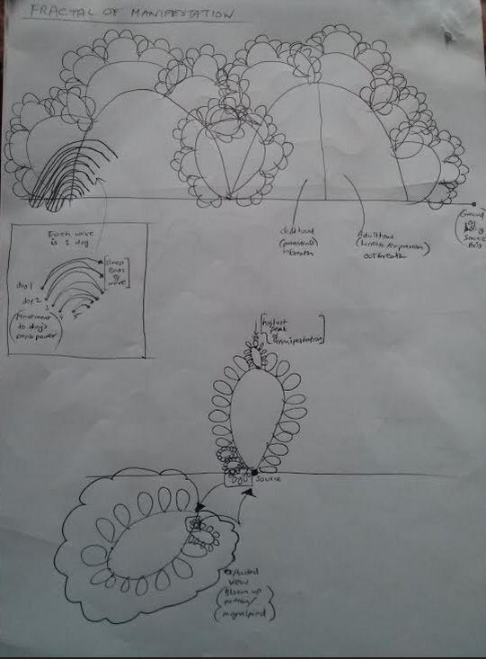 Even moment to moment mood changes, energies, fleeting impulses, immediate desires, perceptions would be even smaller waves of energy manifestation (potential rise – kinetic drop). So the whole thing is a fractal. The smallest of waves would be our most atomic perceptions. The largest of waves would maybe span 25000 years, 2500 lives just for an imagination.