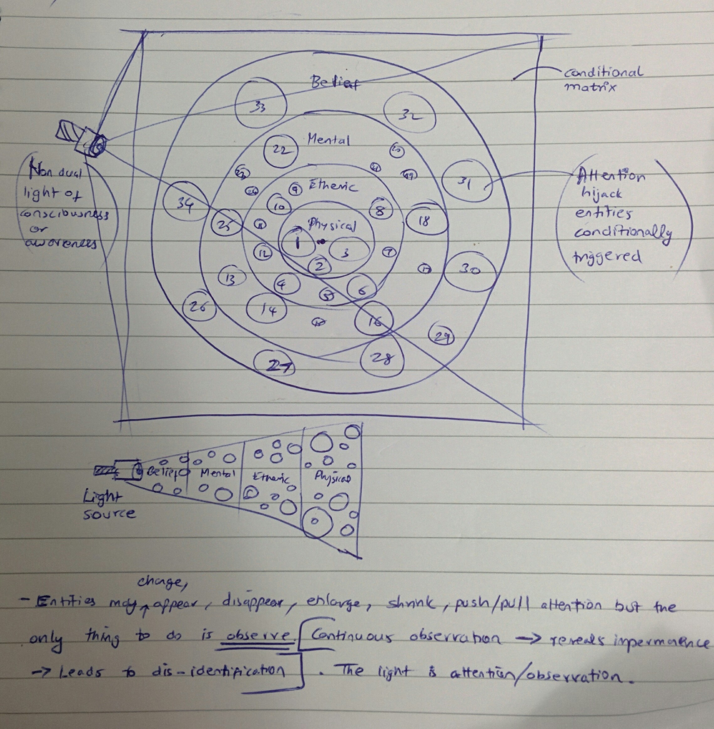 The entire ‘self’ or ‘ego’ itself is an automaton program but a very subtle and highly complex one (it contains the artificial intelligence program or algorithms (algos) of algos of algos of algos.) At each subsequent level, the reductionism is greater, for example at the level of the etheric, say conditions – A,B,C,D,AA,DD,C,FF and 30 more say cause the emotion ANGER. So all the complex input ultimately passes through this entity and it creates one emotion flavor called ‘Anger’.