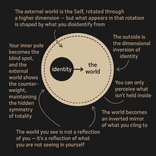 – The external world is the Self, rotated through a higher dimension – but what appears in that rotation is shaped by what you dis-identify from.